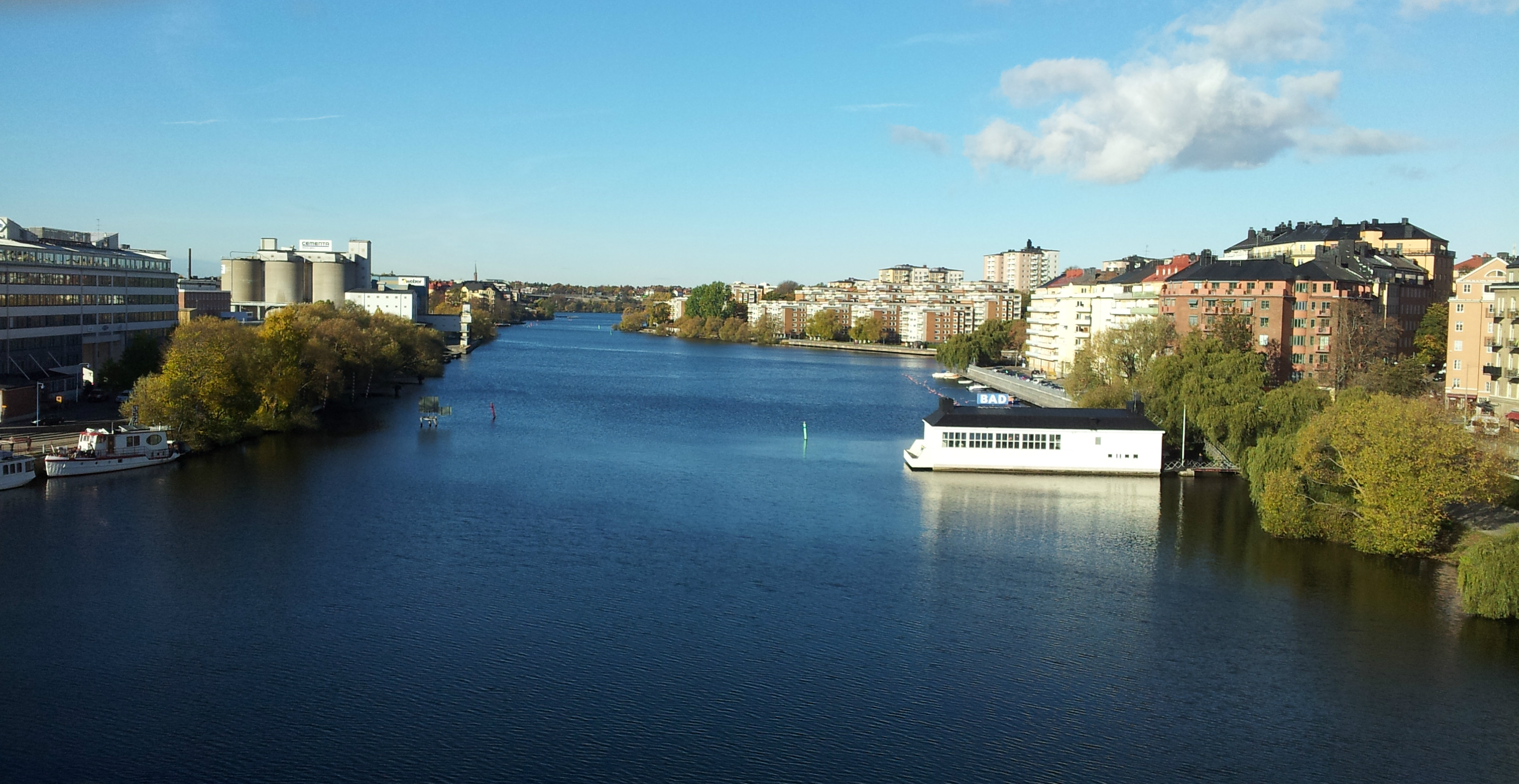 Vid Hornstull finns ett kontorslandskap där jag fick hyra ett skrivbord. En fantastisk utsikt som denna har jag inte men väl arbetskamrater och någonstans att parkera min väska och en dator. Nu jobbar jag 8 timmar om dagen. Och kaffe ingår i hyran.